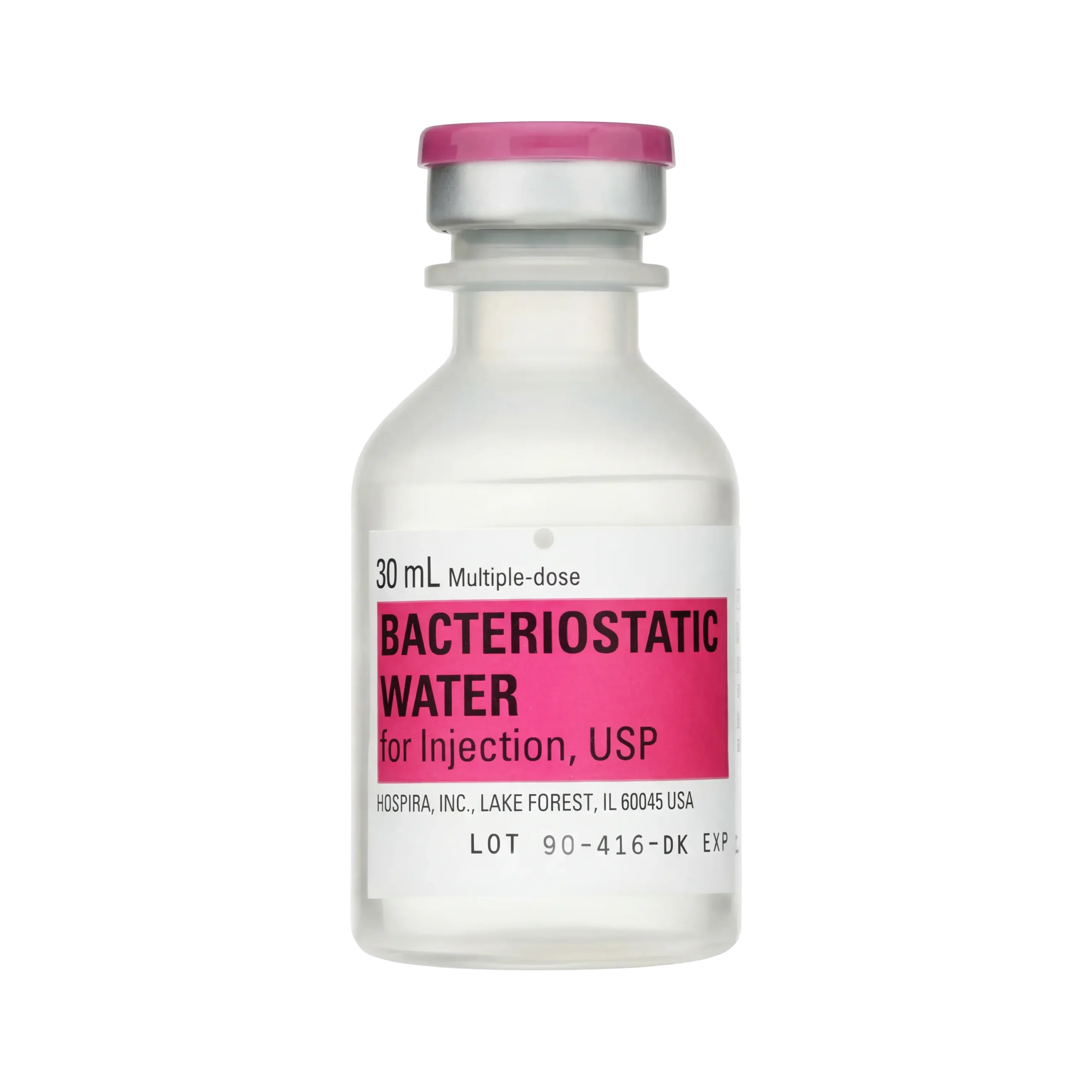 Bacteriostatic Water for Injection (Hospira/Pfizer, 30mL) is a pharmaceutical-grade sterile water preparation containing 0.9% benzyl alcohol as a bacteriostatic preservative. Manufactured by Hospira (a Pfizer company), this is the gold-standard reconstitution diluent used in clinical and research settings worldwide.